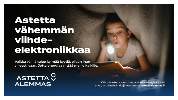 11.10.2022 Hyvää energiansäästöviikkoa! Tällä viikolla vietämme valtakunnallista energiansäästöviikkoa. Kinnula otti aiheeseen varaslähdön järjestämällä viime viikolla energiaillan kotitalouksille. Astetta alemmas -kampanjan tavoitteena on, että: ... Lue uutinen