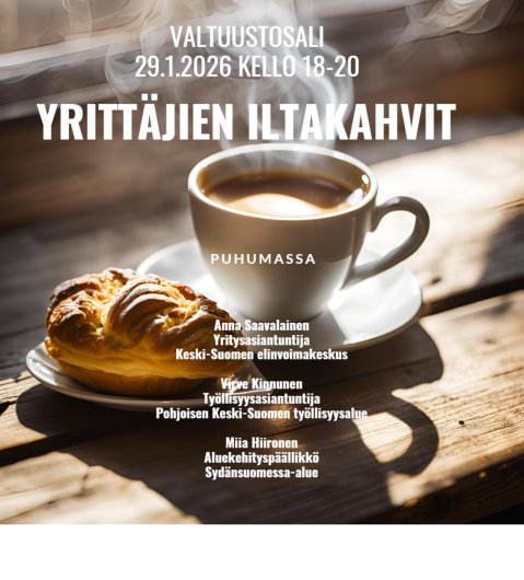 Kaikki yrittäjät ovat tervetulleita vuoden 2026 ensimmäisille yrittäjien iltakahveille Valtuustosaliin 29.1.2026 klo 18:00-20:00.